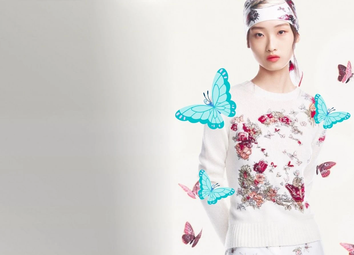 "The vibrant motifs adorn a series of elegant and sporty ready-to-wear pieces and accessories, including white cashmere knits and House icons like the 'Dior Book Tote' and 'Saddle' bags embroidered with the enchanting multicolor butterfly design."