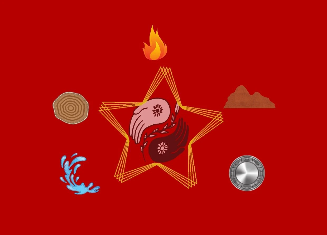 The five elements: Fire, Earth, Metal, Water, and Wood
