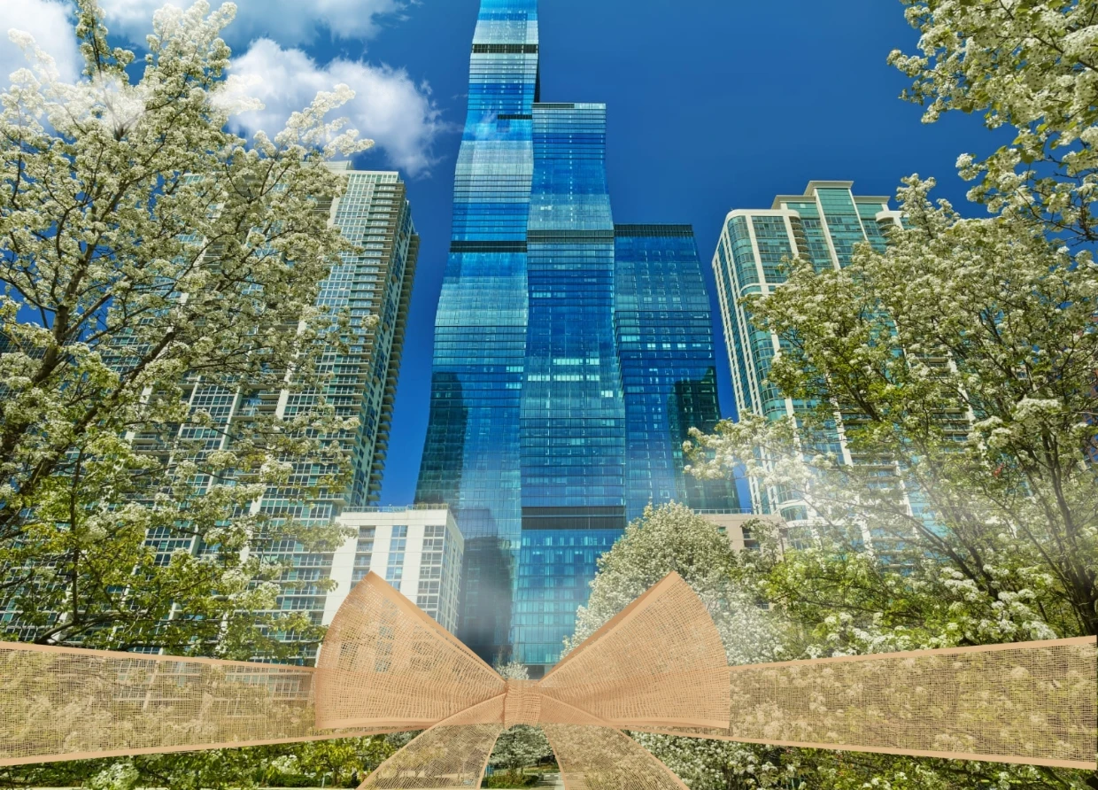 With its prime location in the Lakeshore East neighborhood, The St. Regis Chicago provides easy access to the Chicago River and is within walking distance of luxury retailers, dining destinations, and cultural landmarks. The tower's unique design features interconnected stacked frustum shapes inspired by nature, reflecting the colors of Lake Michigan and the Chicago River.