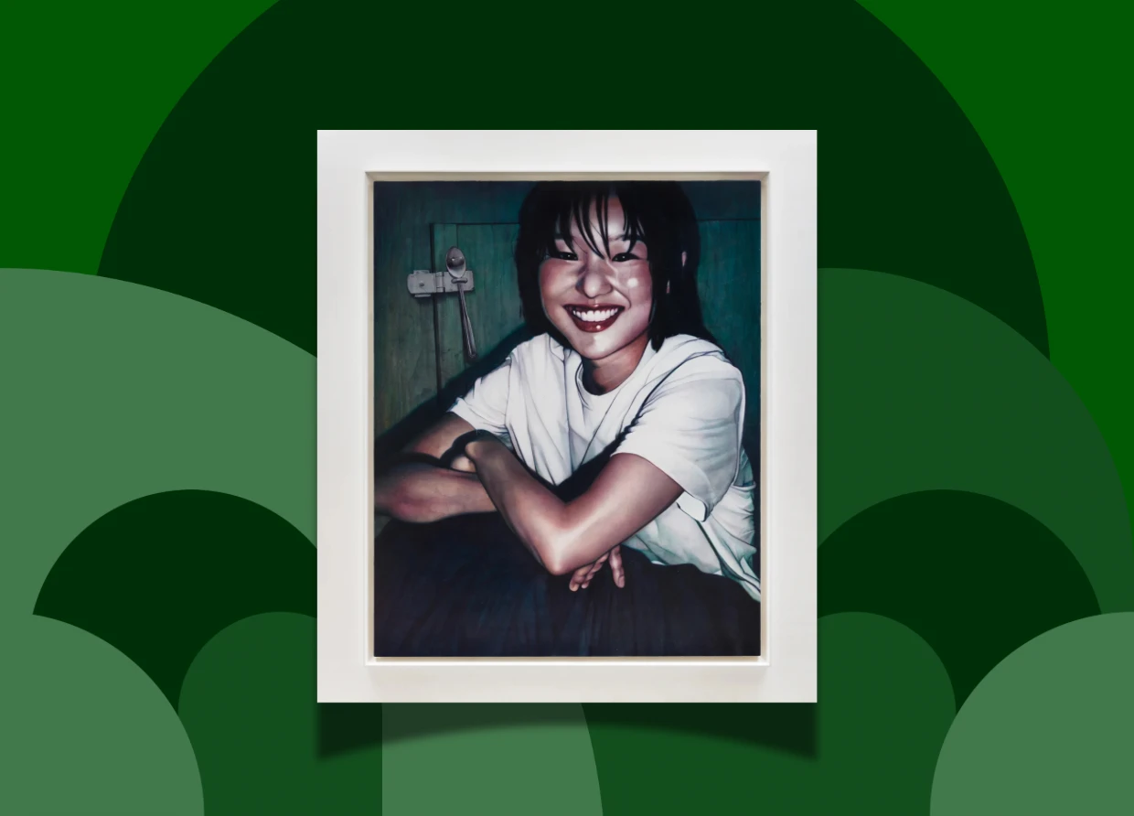 Lee’s latest work, Surface Tension 07, a vibrant portrait of a girl in a white tee smiling with bangs in her eyes, might look like a chill IG post, but behind the scenes is a whole new way of connecting art with digital culture. She doesn’t know her models. She’s never met them. She just slides into their DMs with an offer: “Can I paint you—and pay you for it?” And just like that, a new canvas is born.